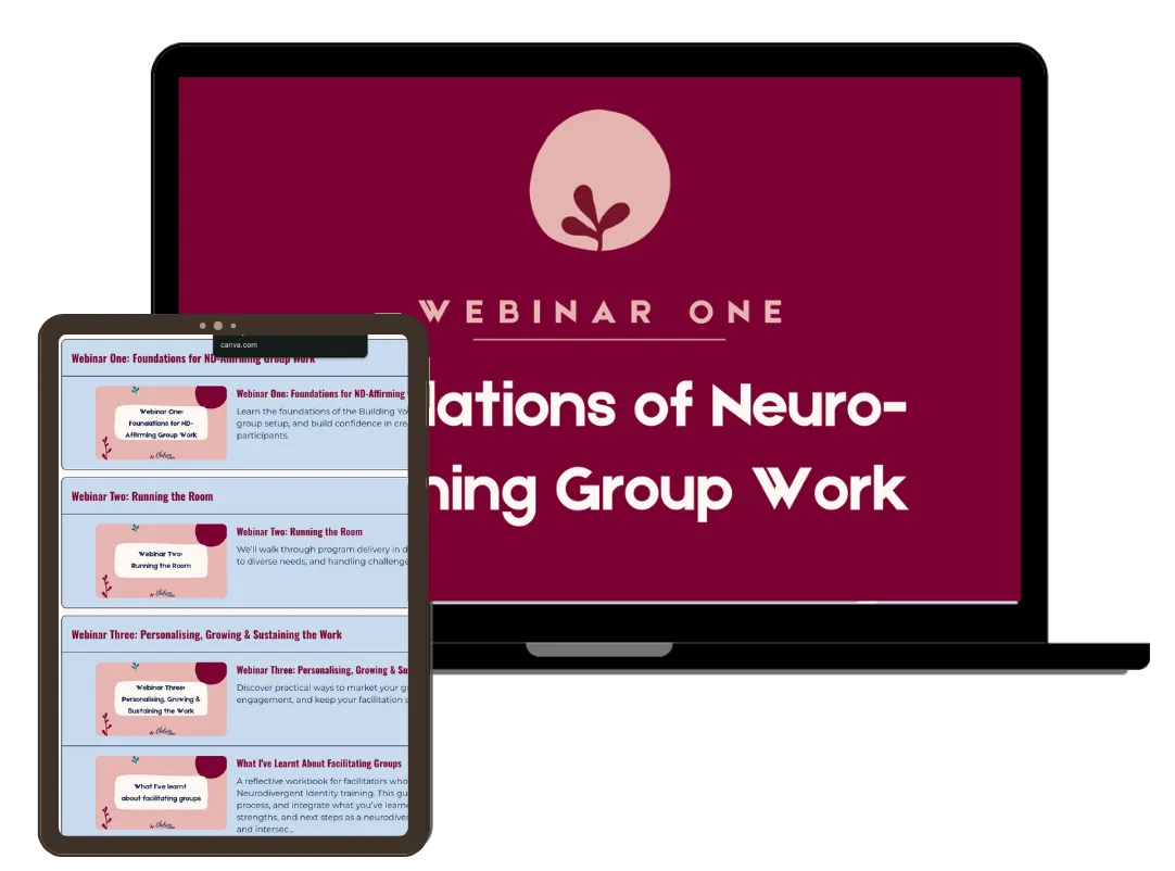 This facilitator program equips you with a framework that honours Neurodivergent identity, supports safe unmasking, and helps participants rebuild after years of pushing through.
